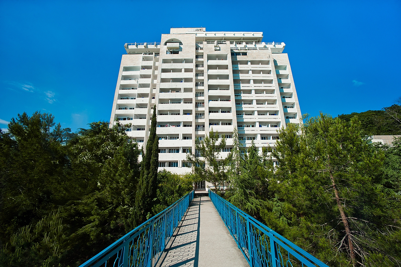 Жилой корпус состоит мз 14 этажей и оборудован 2 лифтами для удобства. Категории евролюкс, люкс, стандарт и эконом оборудованы всем необходимым для проживания, а с балконов открываются завораживающие панорамы моря и гор.