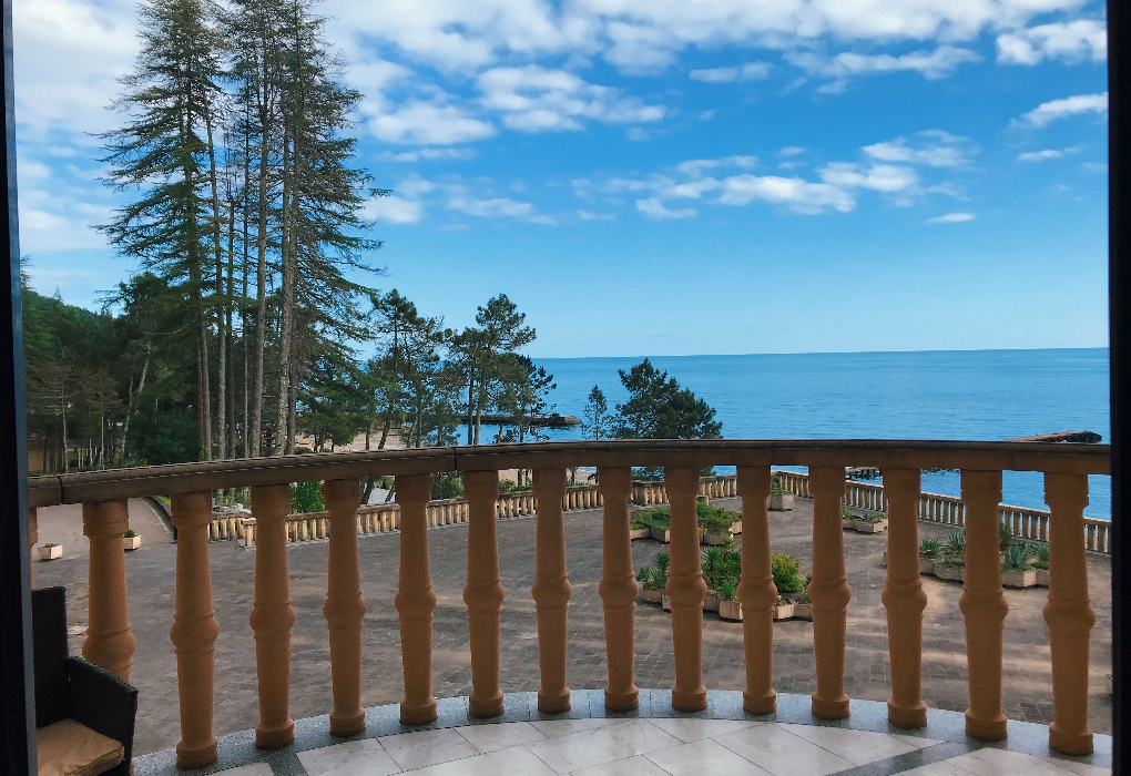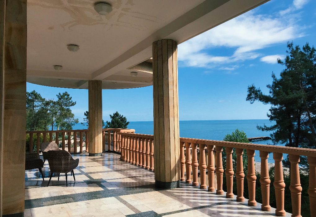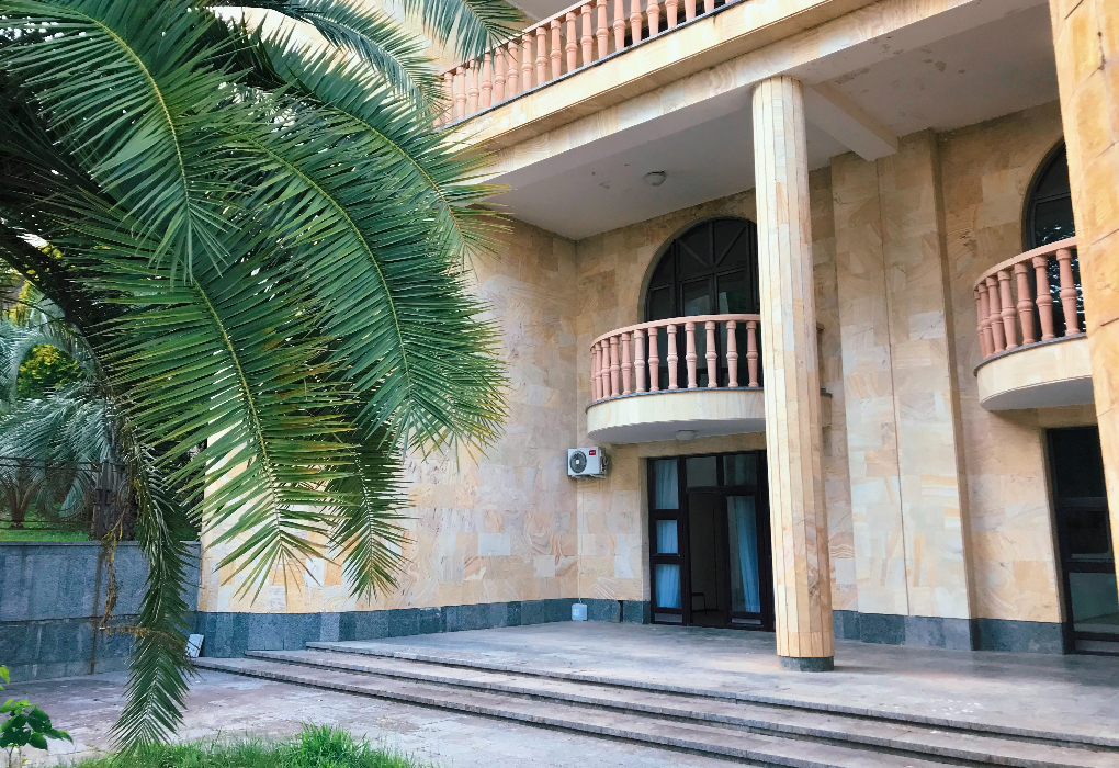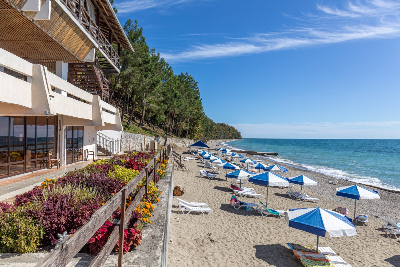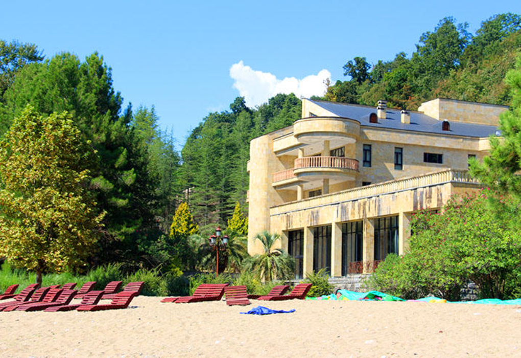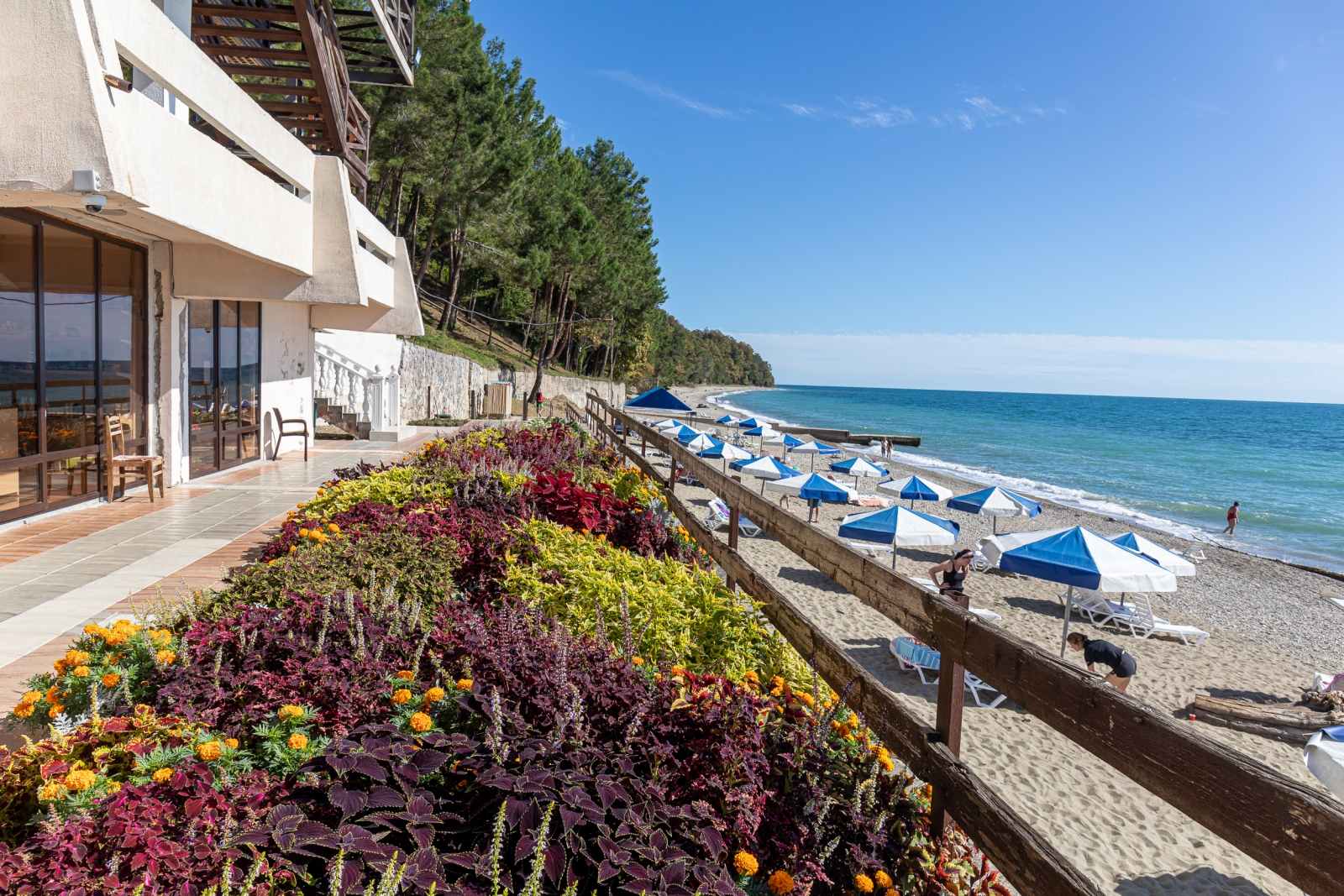 Площадь собственной территории пансионата составляет почти 17 га. Во время прогулки по этому красивейшему уголку мира можно встретить мандариновые и земляничные деревья, кипарисы, самшитовые рощи и тенистые папоротники.