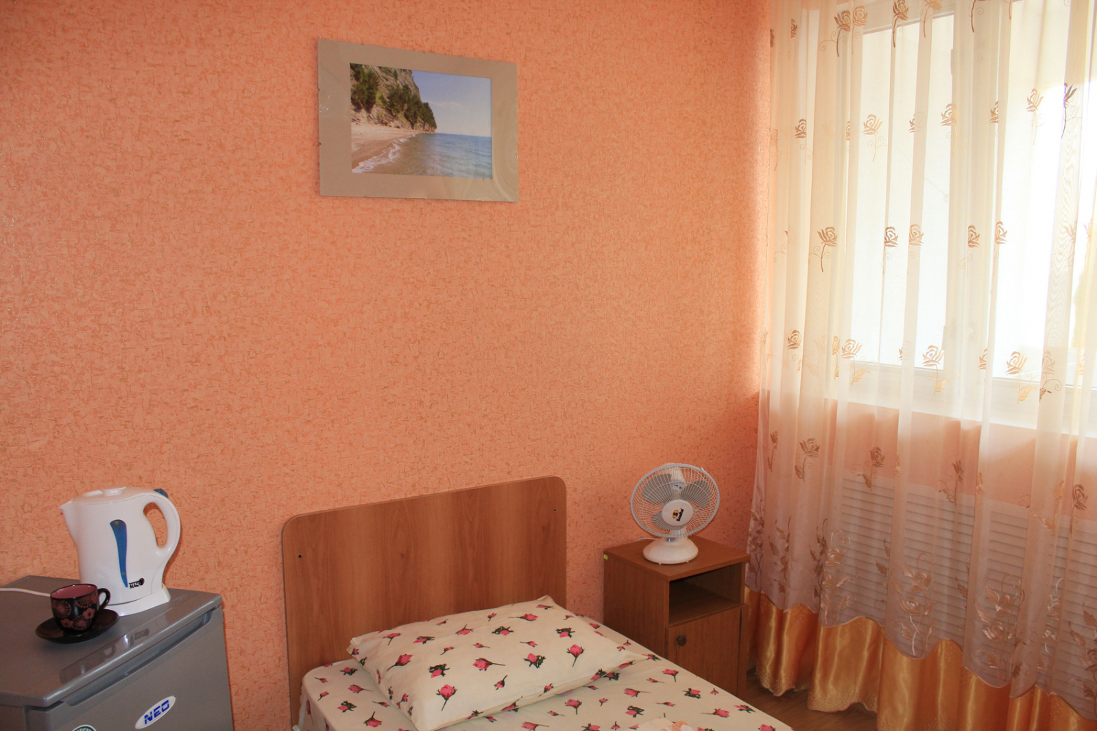 Площадь номера - 15 кв.м. 1 осн. место. 1 доп. место. Балкон. Мебель: вешалка, зеркало, кровать полутороспальная, прикроватная тумбочка, шкаф. Оборудование: вентилятор, телевизор, холодильник. Санузел: с ванной/душем, туалетные принадлежности. Сервис: смена полотенец, смена постельного белья, уборка номера.
