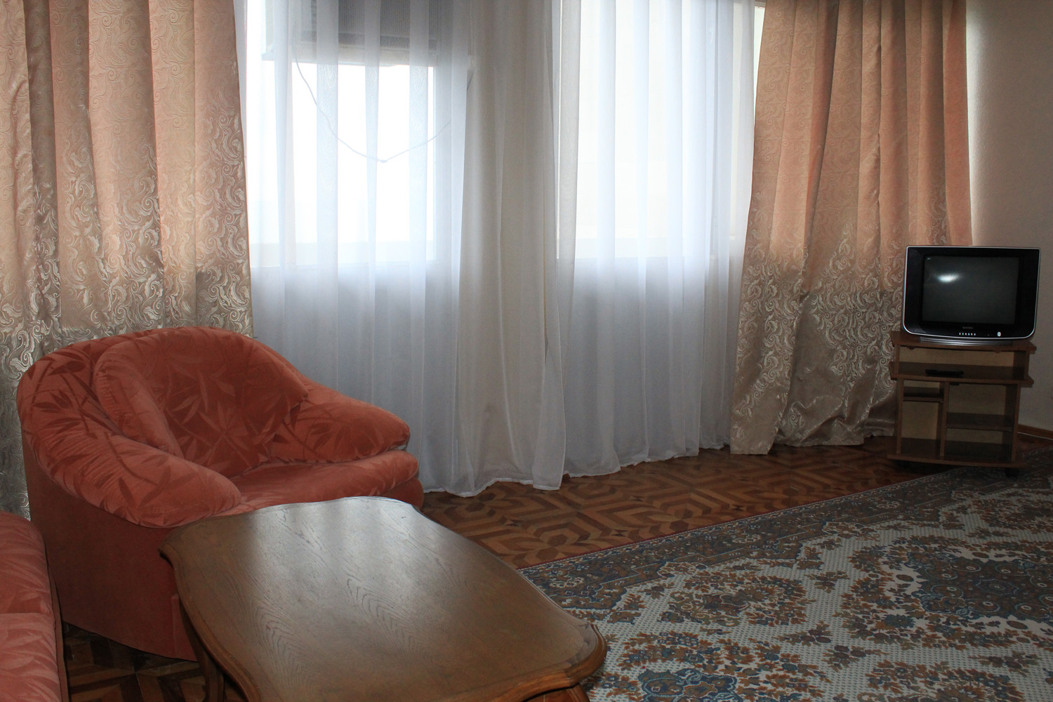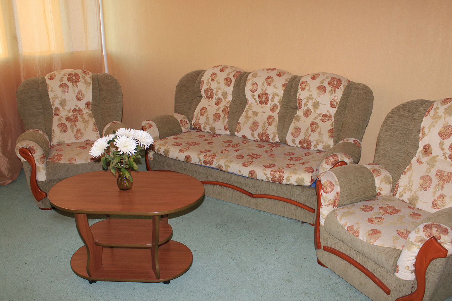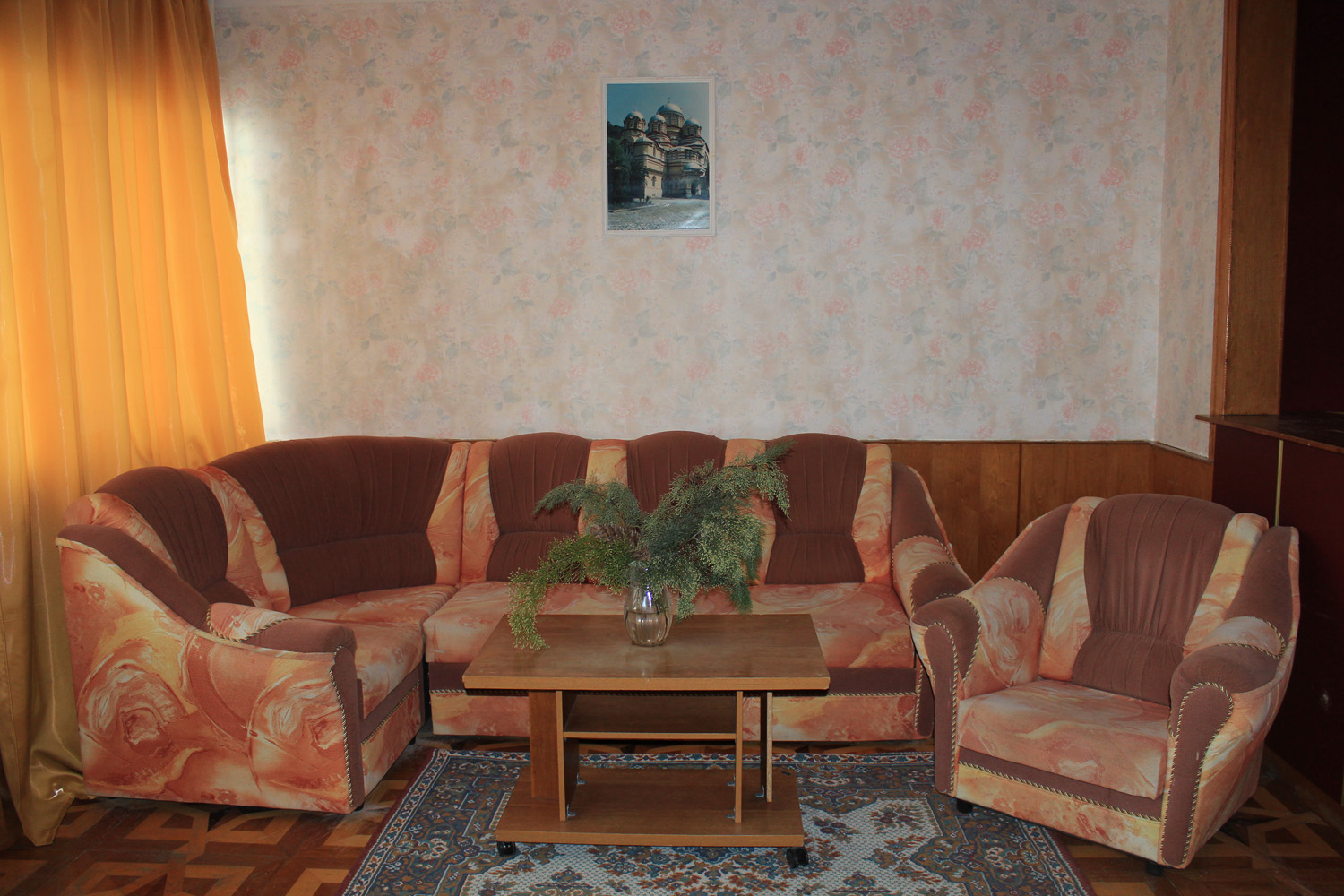 Площадь номера - 52 кв.м. 2 осн. места. 2 доп. места. Балкон. Мебель: вешалка, диван раскладной, зеркало, кресла, кровать двуспальная, прикроватные тумбочки, столик журнальный, стул, шкаф. Оборудование: вентилятор, телевизор, холодильник, чайный набор посуды, электрочайник. Санузел: с ванной/душем, туалетные принадлежности, фен. Сервис: смена полотенец, смена постельного белья, уборка номера.