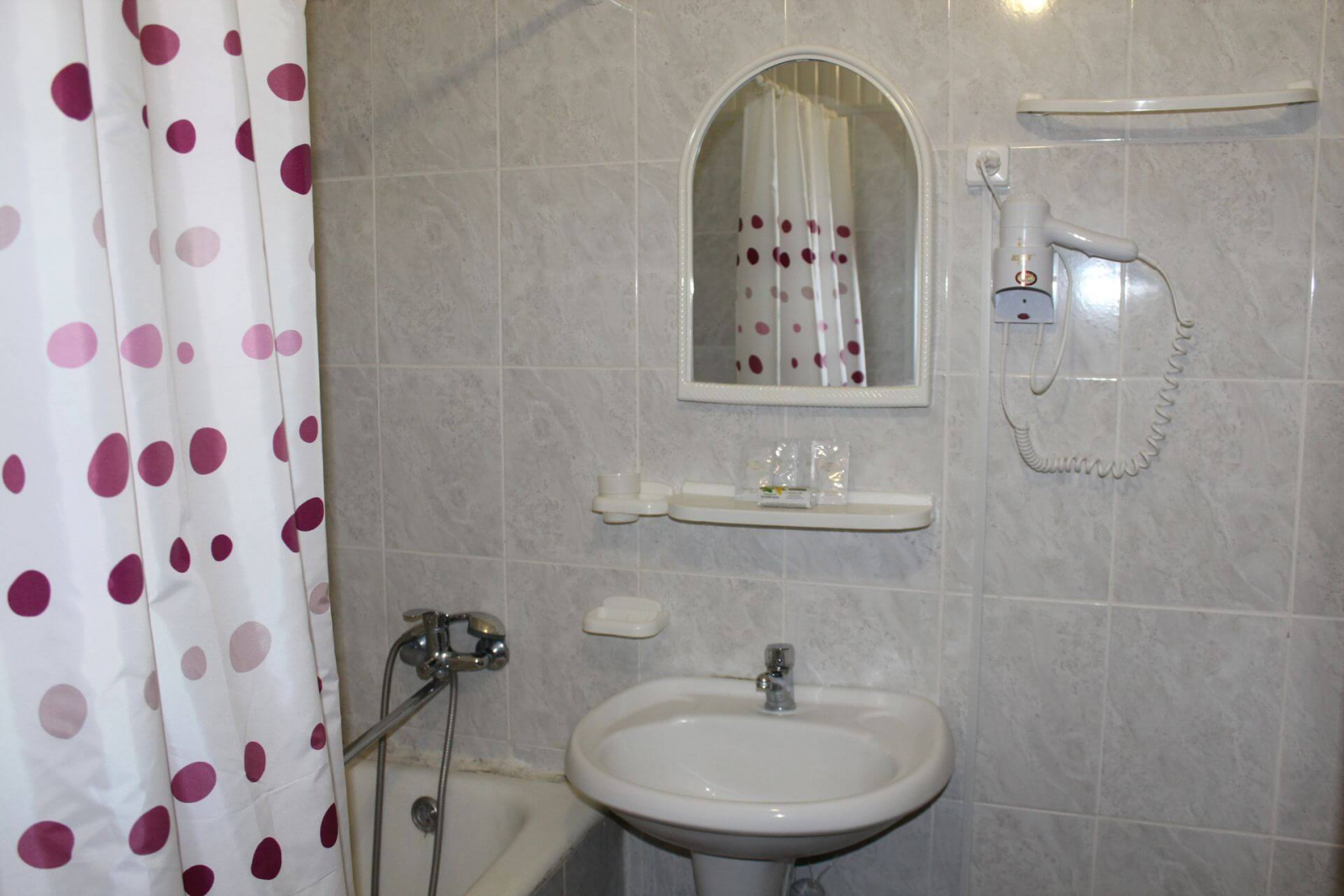 Площадь номера - 37 кв.м. 2 осн. места. 2 доп. места. Мебель: вешалка, диван раскладной, зеркало, кресло, кровать двуспальная, прикроватные тумбочки, стол, стул, шкаф. Оборудование: кондиционер, телевизор, холодильник, чайный набор посуды, электрочайник. Санузел: с ванной, туалетные принадлежности, фен. Сервис: смена полотенец, смена постельного белья, уборка номера.